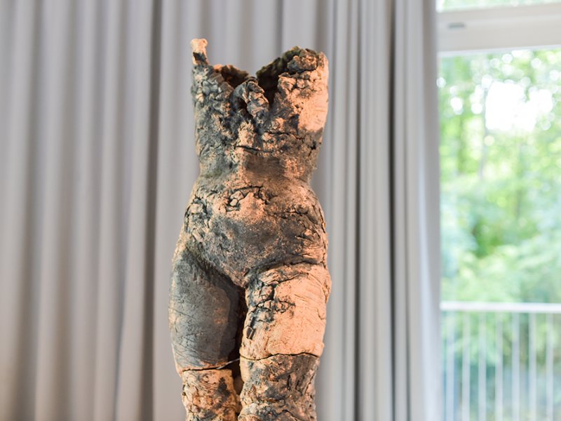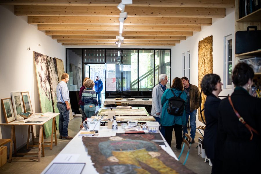Un escalier assez raide grimpe le long de la façade de l’ancienne grange. Point de paille ni de bétail sous les augustes combles de bois, mais un atelier et une surface d’exposition tout neufs, aménagés par Margherita del Balzo et son époux, Gabriel Pictet, propriétaires du Domaine de Marsillon, à Troinex.