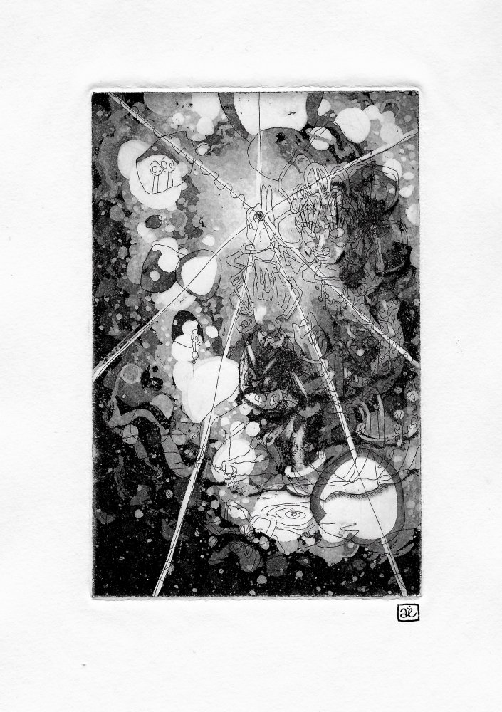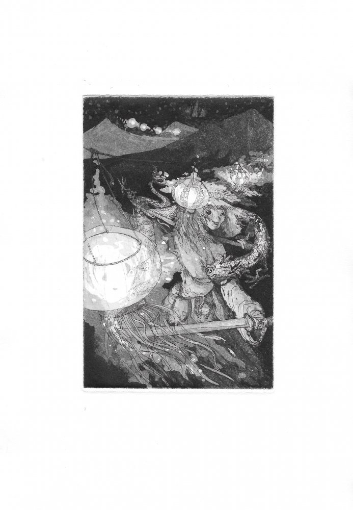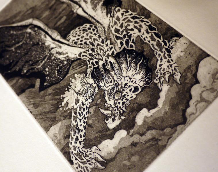 Illustratrice durant son temps libre, a découvert la gravure grâce à l'AGGC et l'expérimente depuis à travers des petits personnages (principalement deux dont un dragon).