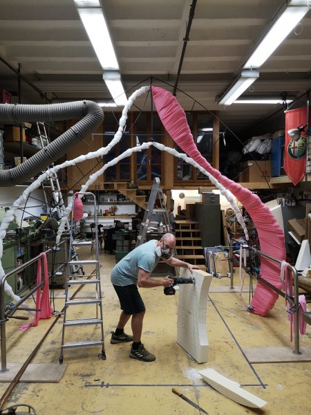 Crée en 2021, le collectif « Les 5 mètres 50 » est un partenariat composé de : Romain De Diesbach, Clément Schlemmer et Alex Gerenton. Tous trois indépendants & salariés et membres actifs / co-fondateurs de l’association Materiuum qui oeuvre pour le réemploi de matériaux de construction et le recyclage d’accessoires scéniques. Nous favorisons les mandats créatifs qui font appel à l’utilisation de matériaux de seconde main. Nos espaces de travail sont situés au Vélodrome à Genève et sont équipés de machines à bois et à métaux. Nos domaines de compétences sont la menuiserie, la soudure, la mécanique, le moulage et la sculpture.