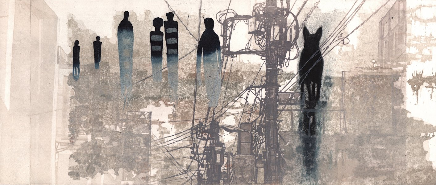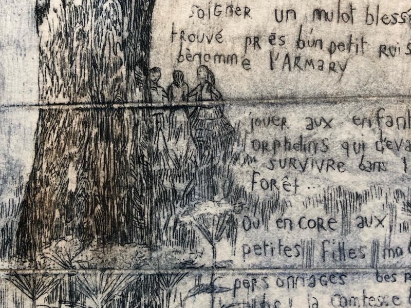 Emmanuel Mottu travaille la gravure par accumulation d’impressions sur la même image. Les matrices de cuivre sont disposées comme un collage aléatoire. Le résultat n’est pas la reproduction d’une même image, mais plutôt une variation de tirages uniques autour d’un même thème. Le procédé de la gravure comme une multiplication d’atmosphères oniriques, nostalgiques, sensibles.