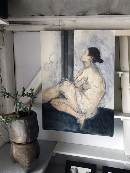 Parallèlement il poursuit une recherche picturale en pratiquant le dessin de figure d’après modèle.