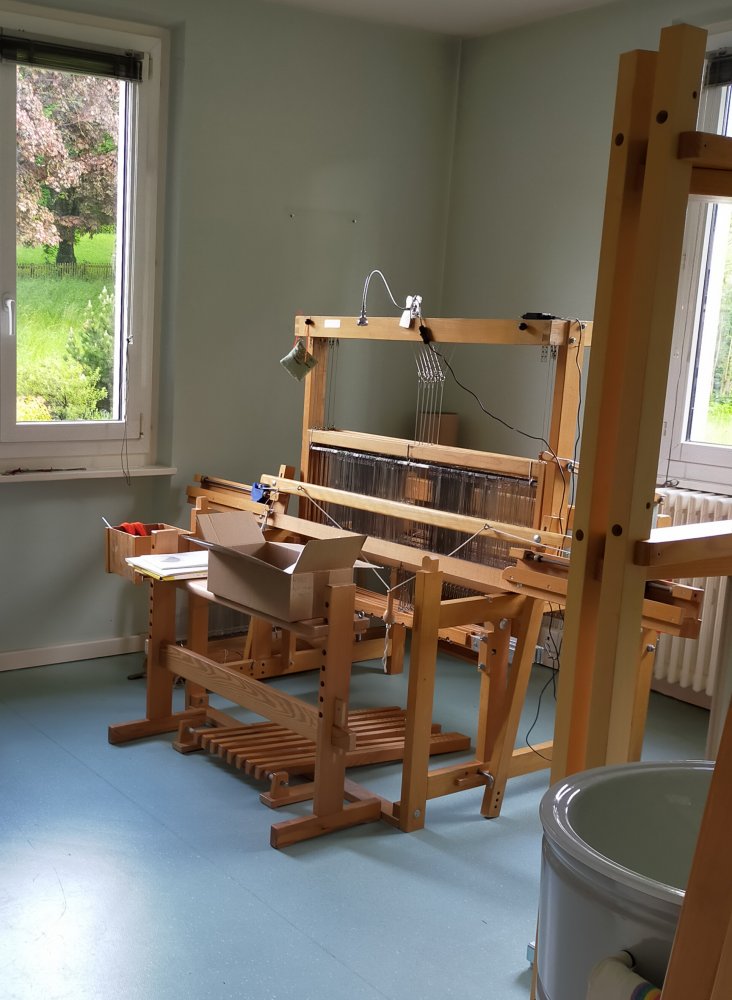 Je suis tombée dans le tissage, un peu par hasard, en effectuant un stage à la fondation Perceval en 2008. Ayant toujours eu un penchant pour les activités manuelles telles que tricot, crochet, couture, etc., j’ai eu envie d’en savoir plus sur le tissage. En 2010, j’ai rencontré Danièle Mussard avec qui j’ai effectué la formation «tissage et handicap» de 160 h. et obtenu le diplôme de Filambule. J’ai poursuivi mon apprentissage auprès de l’atelier de tissage de la fondation Perceval et obtenu mon CFC de Créatrice de tissu en 2014.. Entre 2019 et 2021, j’ai tissé dans une roulotte, à la ferme Demeter des Éterpis, à Gollion. Mon atelier est maintenant logé dans l’ancienne maison des médecins au Grand-Saconnex.