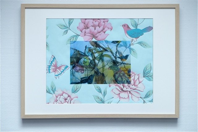 Le papier peint – montage papiers ou sérigraphie – questionne à merveille les rapports dessus / dessous, dedans / dehors, art décoratif / art. Il met en perspective les systèmes de classification et de hiérarchie de goût, de valeur et d’usage, et amène à repenser une série de relations, notamment de l’homme à l’animal. Ces réflexions prennent aussi la forme de projections et de textes.