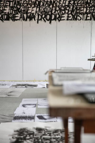 Jean-Michel Comte est né en 1975 à Nice, où il a résidé jusqu’à l’âge de 21 ans. Il s’engage dans des études d’arts plastiques en 1994 au sein de la Villa Thiole à Nice, puis aux Beaux-Arts de Toulon de 1996 à 2000. S’ensuit un cursus de 3 ans à la HEAD de Genève, dans l’atelier de Peter Roesch. Gestuelle et instinctive, son œuvre prend sa source dans un tumultueux vécu intérieur, dans des émotions et des souvenirs traumatiques que le créateur transcende en autant d’écrits dissimulés, de lignes vibrantes et de figures éclaboussées. L’artiste fixe l’immédiateté de son mouvement en passant d’une feuille à l’autre : « Je recouvre, je sature, je raye, je dépose des repentirs à chaque instant. J’exprime et je réprime. Je dévoile et je cache ».