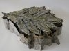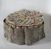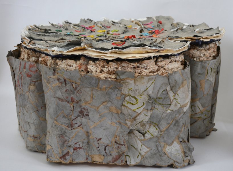 Marilou Pilou Glinz travaille la terre ainsi que le papier. S’interroge sur les interactions possibles entre ces deux matériaux: oeuvres figuratives dans un premier temps, où elle ne gardait plus que les enveloppes légères de ses modelages de terre, elle continua ensuite une recherche bi-dimensionnelle sur le thème de la transparence et de l’opacité du papier végétal. Ses dernières recherches reprennent le thème des feuillets empilés, couches spatio-temporelles, liées, entre autres, au thème des générations successives.