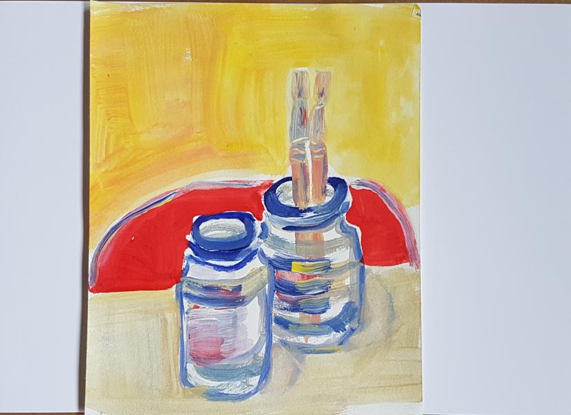 Dans mon expérience plastique j’essaie de puiser dans mon environnement. J’aime autant travailler en couleurs (vives) qu’en noir blanc. J’écris aussi à mes heures. Les changements d’un moyen d’expression à un autre sont une stimulation.