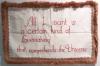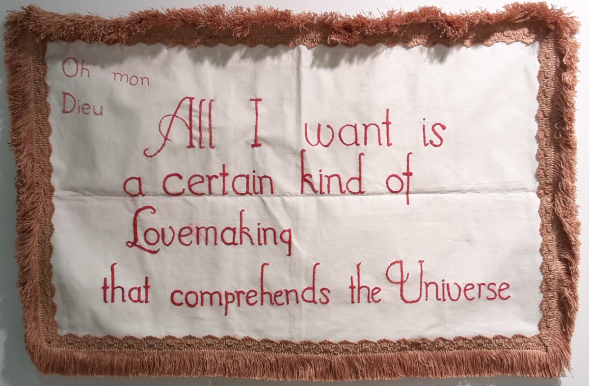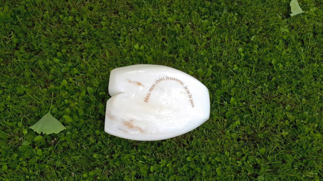 Mes travaux s’articulent souvent autour de textes à la manière propre d’un mémorialiste. Que ce soit de courtes phrases, ou des extraits de journal, des manuels d’utilisation fictifs, ou encore des mesures pour cartographier un terrain, ils ont toujours un aspect oral et confessionnel. Ce sont toujours des choses que j’aimerais dire mais le fait de les prononcer simplement ne m’aurait pas suffi. La nature éphémère des énonciations me laisse insatisfaite. J’aimerais toujours pouvoir revenir sur mes paroles autant de fois que je le souhaiterais. D’ou le travail d’ enregistrer, graver, ou broder mes phrases à fin de, à la fois les immortaliser, et par la résistance du matériel mesurer ma propre résolution. Je cherche souvent des matériaux ou des pratiques qui rendent le travail d’ inscription difficile voir physiquement éprouvant. Je suis fascinée autant par l’aspect que par la synergie produite entre objet et texte.