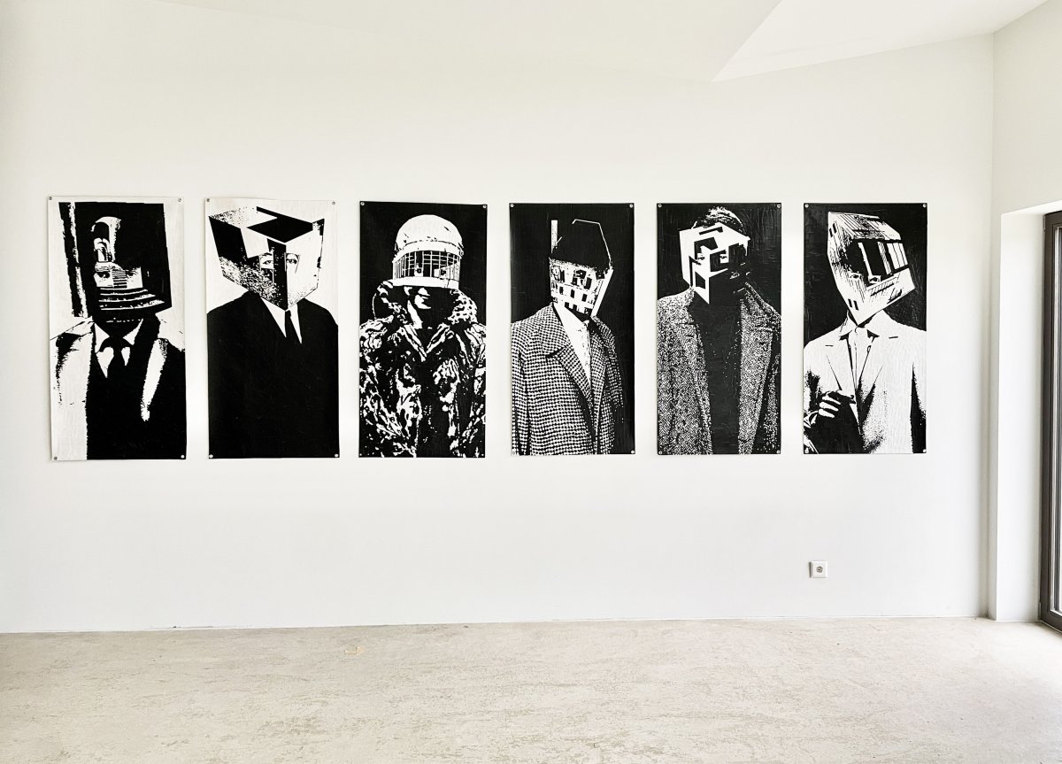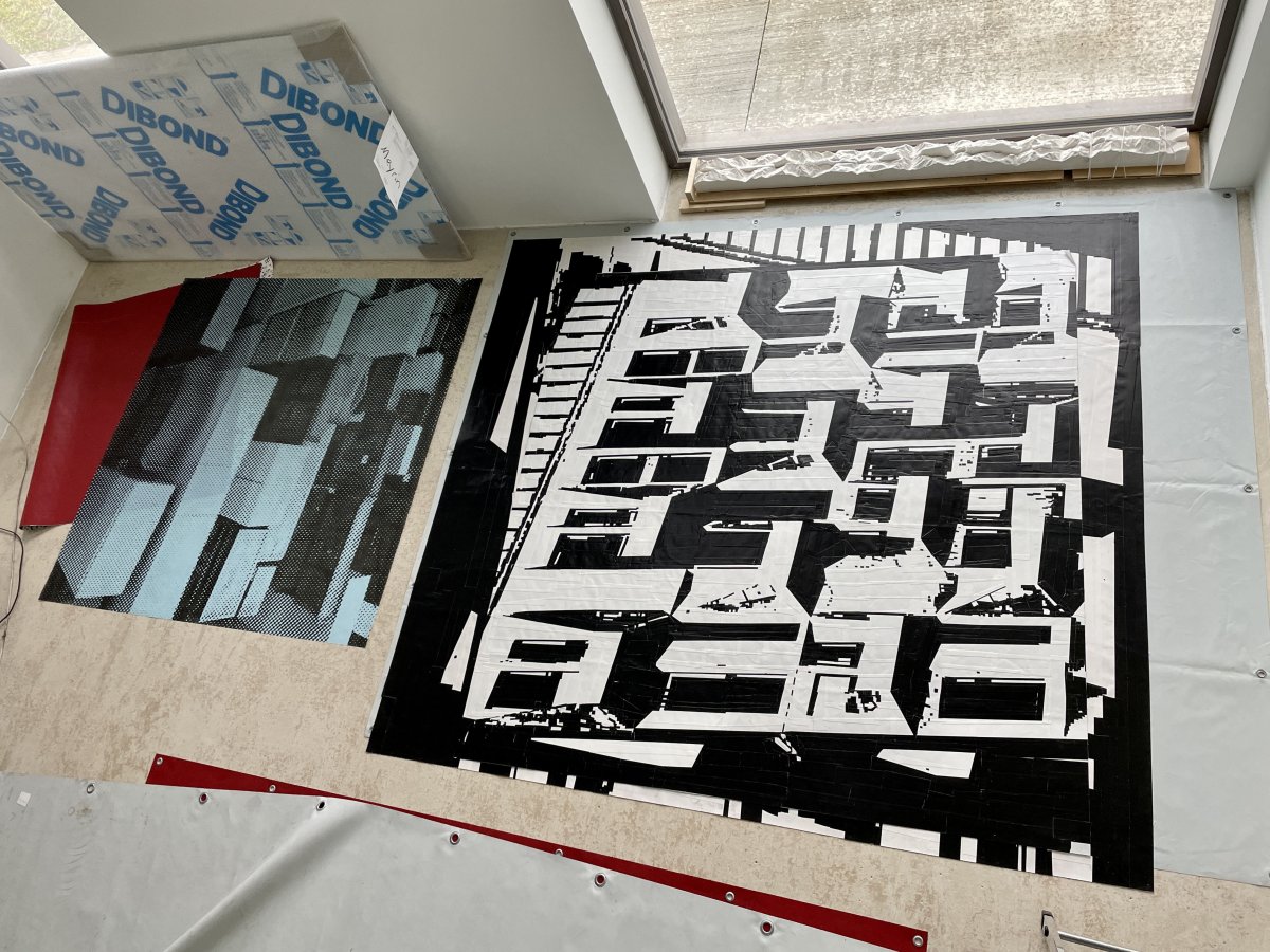 Pendant plus de vingt ans, la sculpture et l’installation furent au centre de la pratique artistique de Virginie Delannoy. En 2017, si ce n’est pas une rupture, un bouleversement a lieu dans son travail, la sculpture est laissée en suspens, elle se consacre au dessin sans faire l’impasse sur les valeurs tridimensionnelles qui l’intéressent. Après deux années de dessin grand format au fusain, elle souhaite introduire la couleur et travailler avec des matériaux bruts et résistants. Le scotch prend la place du fusain, le dessin est entièrement construit sur de la bâche par des centaines de petits morceaux de gaffeur.