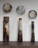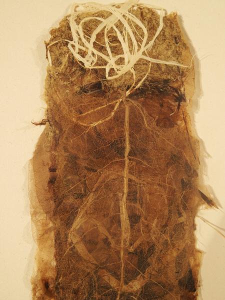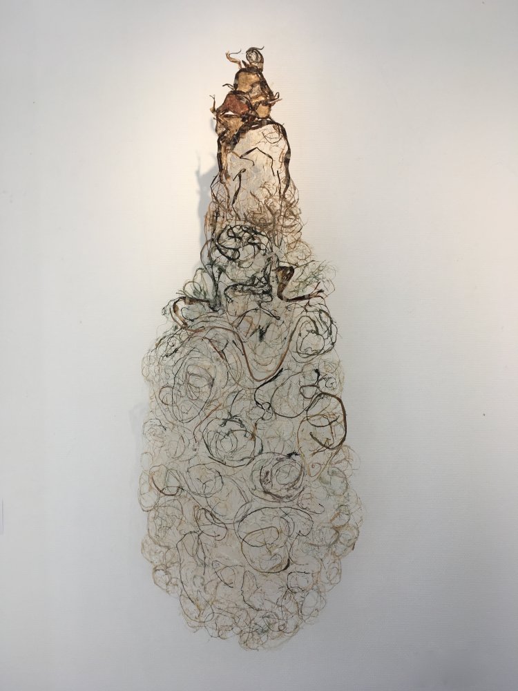Atteindre l’indicible reste mon aspiration la plus profonde, là ou la frontière entre le reel et l’irréel disparaît, connexion entre les molécules des fibres et les miennes. S’alléger, se dépouiller, traverser les strates qui me constituent. Je réalise mes oeuvres à base de fibres végétales. Après la collecte des plantes dans la nature, démarche d’ordre spirituel, je transforme ces plantes, par des cuissons, en matières « papérisées », par l’extraction de la cellulose des plantes. Le travail de l’eau dessine dans les matières et raconte la vie. Les couches délicates ou douloureuses que l’on arrache pour atteindre son intériorité nous encombrent mais nous constituent à la fois.